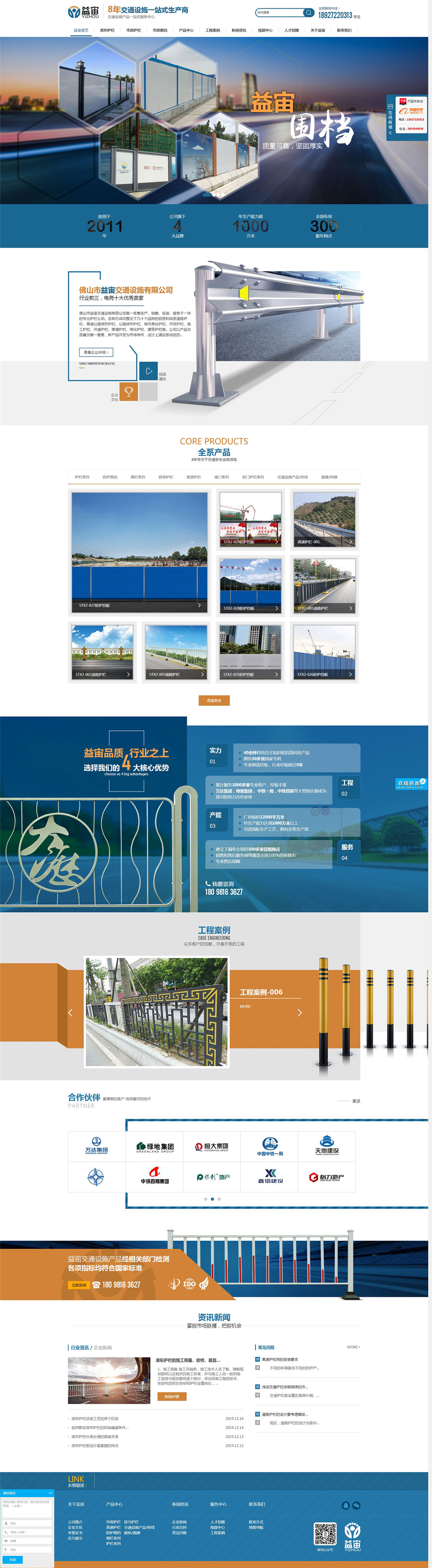 佛山市益宙交通設施有限公司是一家集生產、銷售、安裝、服務于一體的專業護欄公司。目前已成功推出了幾十個品種的鋼質和鋁質道路護欄、高速公路波形護欄、公路波形護欄、城市美化護欄、市政護欄、施工護欄、河道護欄、圍墻護欄、綠化護欄、建筑護欄等。公司以產品為質量為第一要素,新產品開發為市場導向,設計上滿足各地區的特色,形成了一批具有自身特點的特色護欄。工程遍布全國各地,深受廣大用戶的一致好評。