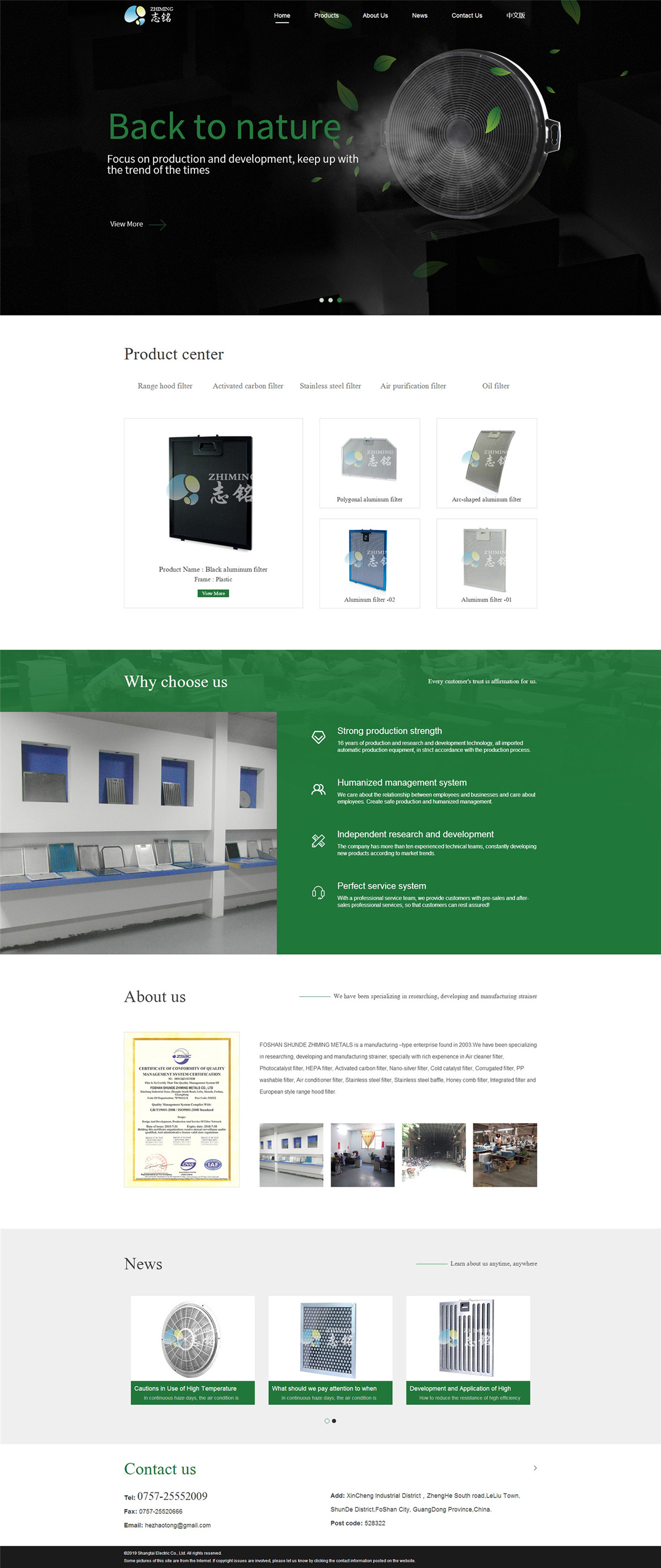 FOSHAN SHUNDE ZHIMING METALS is a manufacturing –type enterprise found in 2003.We have been specializing in researching, developing and manufacturing strainer, specially with rich experience in Air cleaner filter, Photocatalyst filter, HEPA filter, Activated carbon filter, Nano-silver filter, Cold catalyst filter, Corrugated filter, PP washable filter, Air conditioner filter, Stainless steel filter, Stainless steel baffle, Honey comb filter, Integrated filter and European style range hood filter.