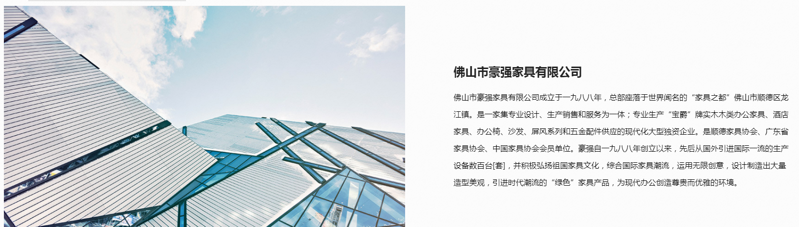 佛山市豪強家具有限公司是國內具有實力的家具生產廠商及國內品牌企業。從公司全體員工形成了一個以廠為家、以誠信為先、以創造價值為榮的科學價值觀,激發著每位員工的潛能,發揚團隊合作精神,創造出的產品品質和服務態度。不僅覆蓋各省、城市建立起龐大、健全的產品銷售及售后服務網絡,貿易集團建立起長期穩定的合作關系。如今公司屬下的“寶爵”牌辦公家具系列已成為當地受歡迎的辦公家具產品之一,產品專為政府機構、行政企事業單位所廣泛采用。
