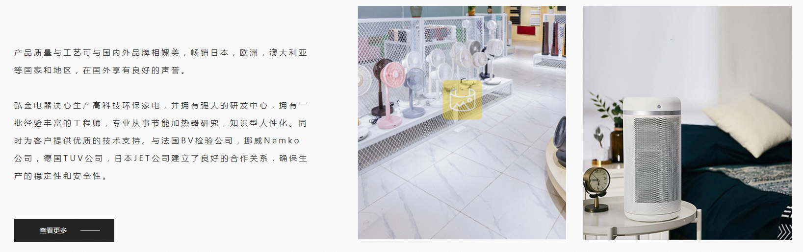 佛山市順德弘金電器科技有限公司座落于素有 “電器之鄉”之稱的順德,弘金電器科技有限公司是—家集研發,生產,銷售于一體的專業小家電企業,主要產品為電風扇,加熱器。