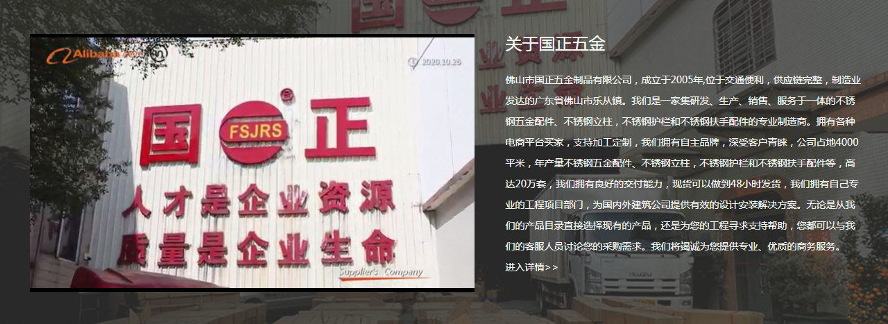 佛山市國(guó)正五金制品有限公司,成立于2005年,位于交通便利,供應(yīng)鏈完整,制造業(yè)發(fā)達(dá)的廣東省佛山市樂(lè)從鎮(zhèn)。我們是一家集研發(fā)、生產(chǎn)、銷售、服務(wù)于一體的不銹鋼五金配件、不銹鋼立柱,不銹鋼護(hù)欄和不銹鋼扶手配件的專業(yè)制造商。擁有各種電商平臺(tái)買家,支持加工定制,我們擁有自主品牌,深受客戶青睞,公司占地4000平米,年產(chǎn)量不銹鋼五金配件、不銹鋼立柱,不銹鋼護(hù)欄和不銹鋼扶手配件等,高達(dá)20萬(wàn)套,我們擁有良好的交付能力,現(xiàn)貨可以做到48小時(shí)發(fā)貨,我們擁有自己專業(yè)的工程項(xiàng)目部門,為國(guó)內(nèi)外建筑公司提供有效的設(shè)計(jì)安裝解決方案。無(wú)論是從我們的產(chǎn)品目錄直接選擇現(xiàn)有的產(chǎn)品,還是為您的工程尋求支持幫助,您都可以與我們的客服人員討論您的采購(gòu)需求。我們將竭誠(chéng)為您提供專業(yè)、優(yōu)質(zhì)的商務(wù)服務(wù)。