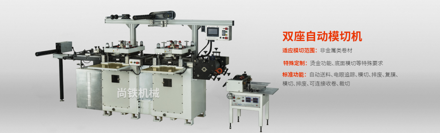 本公司從1991年至今,經過20年不斷的推陳出新,自主創新研制出一系列不干膠商標印刷機和自動模切機。印刷機從平壓式到斜壓式,從單一型到集送料、燙金、多色印刷、復膜、模切、排廢等一次完成的全自動商標印刷機。自動模切機更有質的突破,從拉桿式到數控型,單座到雙座,壓力從5噸到80噸,寬幅從200mm到1000mm的較大面積模切,配合專門研制的復膜機、數控裁片機、貼合送料機等可自行組合不同加工工藝要求的生產線,為客戶提供更多的解決方案,現已在電子、IT、汽車等制造行業取得廣泛的認同,特別應用于背光模組用光學膜片、膠粘制品、防塵材料、防震產品、絕緣材料、耐熱隔熱材料的沖切。